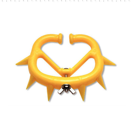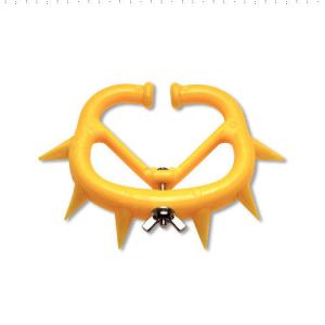 This is calf weaner; it gets inserted into nose of the calf. The weaner creates a barrier so the calf cannot get grip on the teat. The little Plastic points make it uncomfortable for the cows when he attempts, so she pushes him away. With this method the calf gets to remain with his mother during weaning, less stressful than separation.